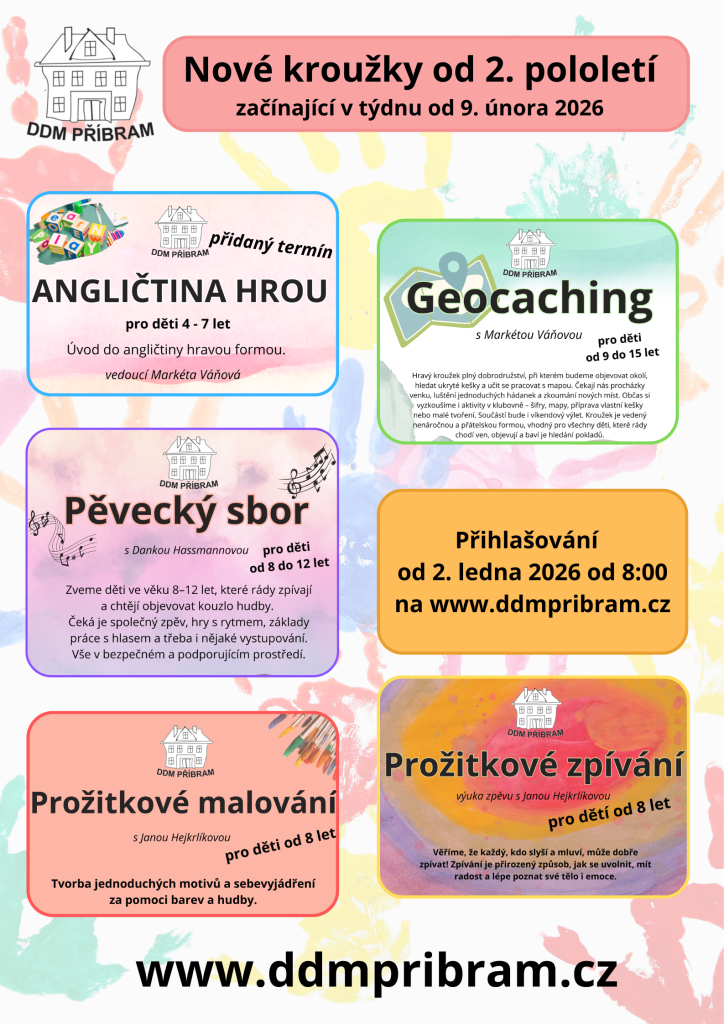 V druhém pololetí je samozřejmě možnost se přihlásit do stávajících kroužků, kde ještě není naplněna kapacita. Máme pro Vás však i pár novinek.
